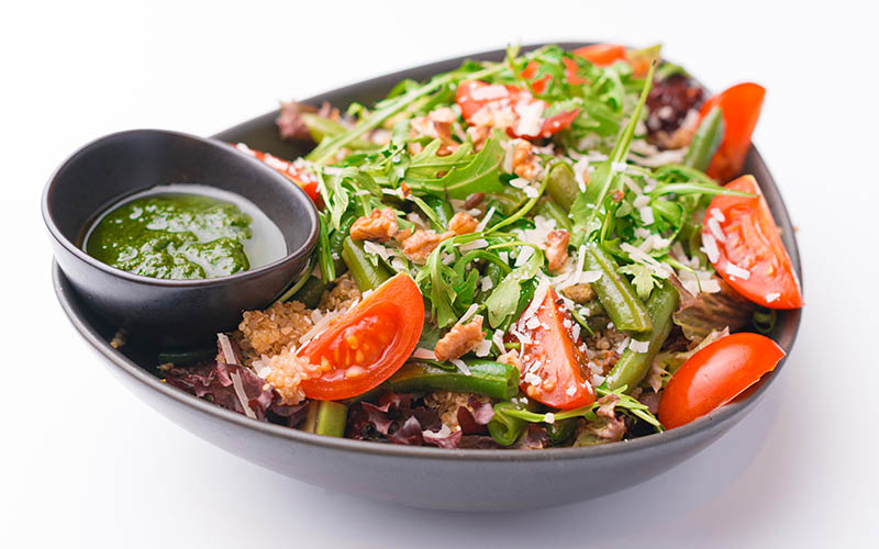 Almost everyone knows that dark green leafy vegetables are especially recommended for raw consumption. It is possible to make the salad much healthier by adding quinoa to the greens, which are rich in vitamins and minerals.