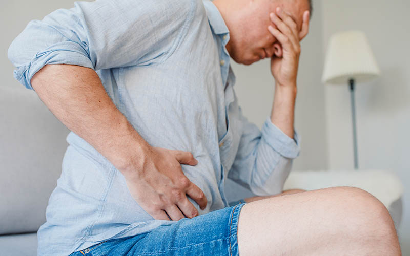 - Abdominal pain that increases when moving to a horizontal position after meals